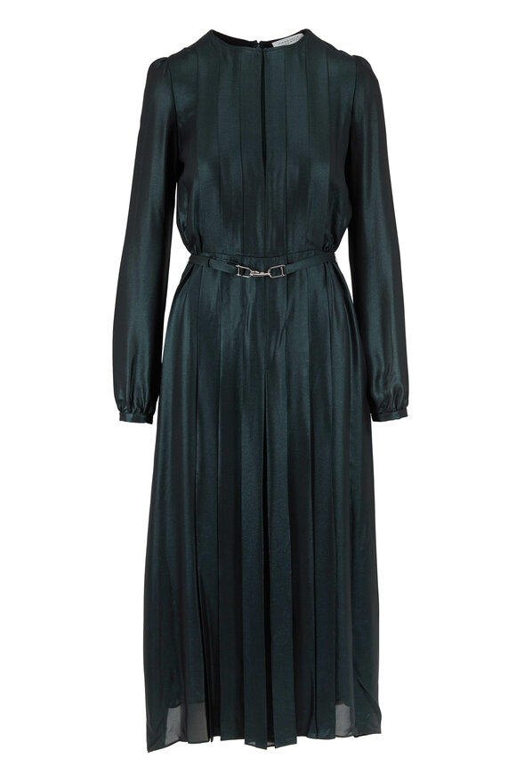 Adelaide Emerald Iridescent Silk Belted Midi Dress