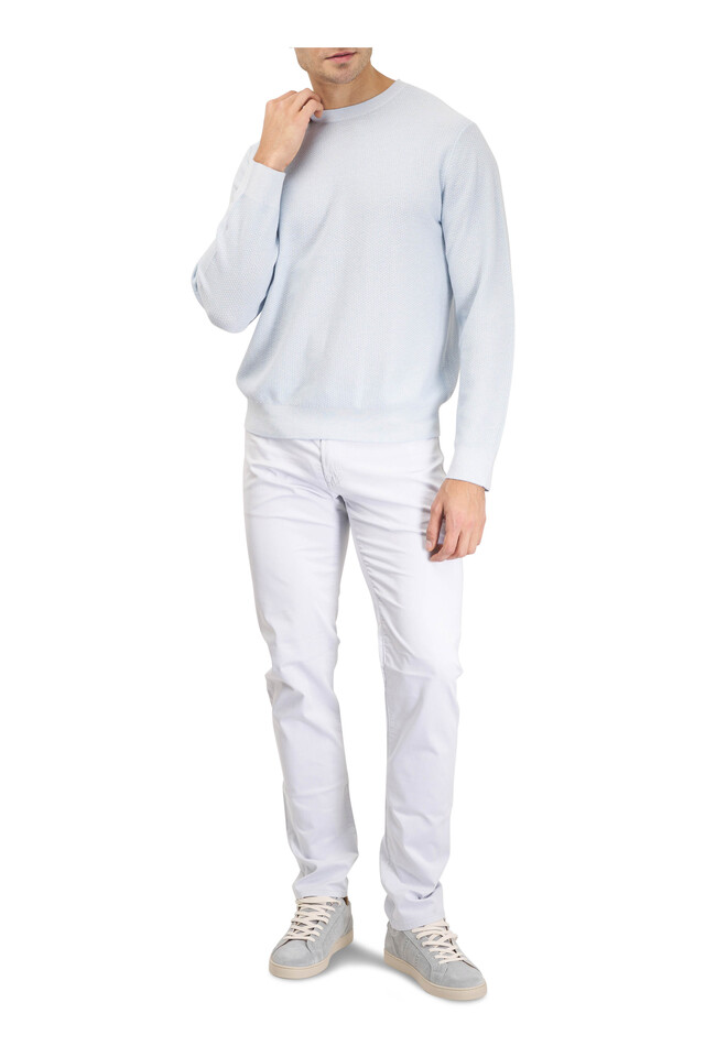 Light Blue Wool, Cotton & Cashmere Sweater