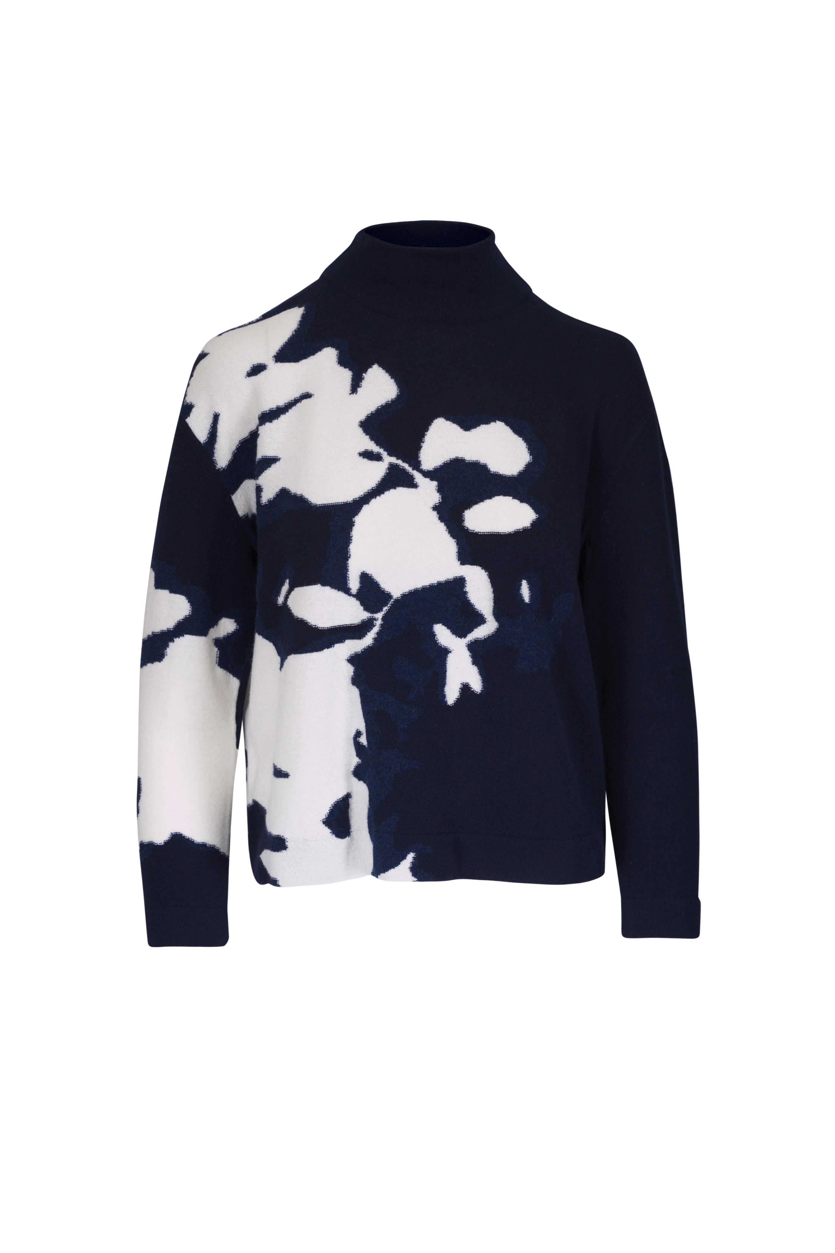 Navy & White Wildflower Print Cashmere Sweater