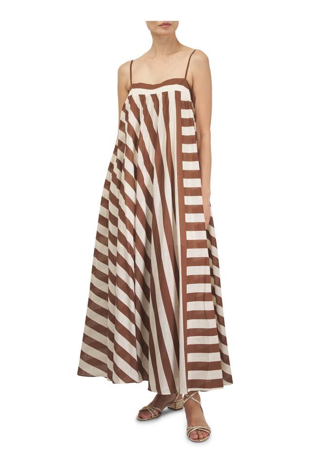 Zimmermann - Daylight Stripe Choc Cream Maxi Dress