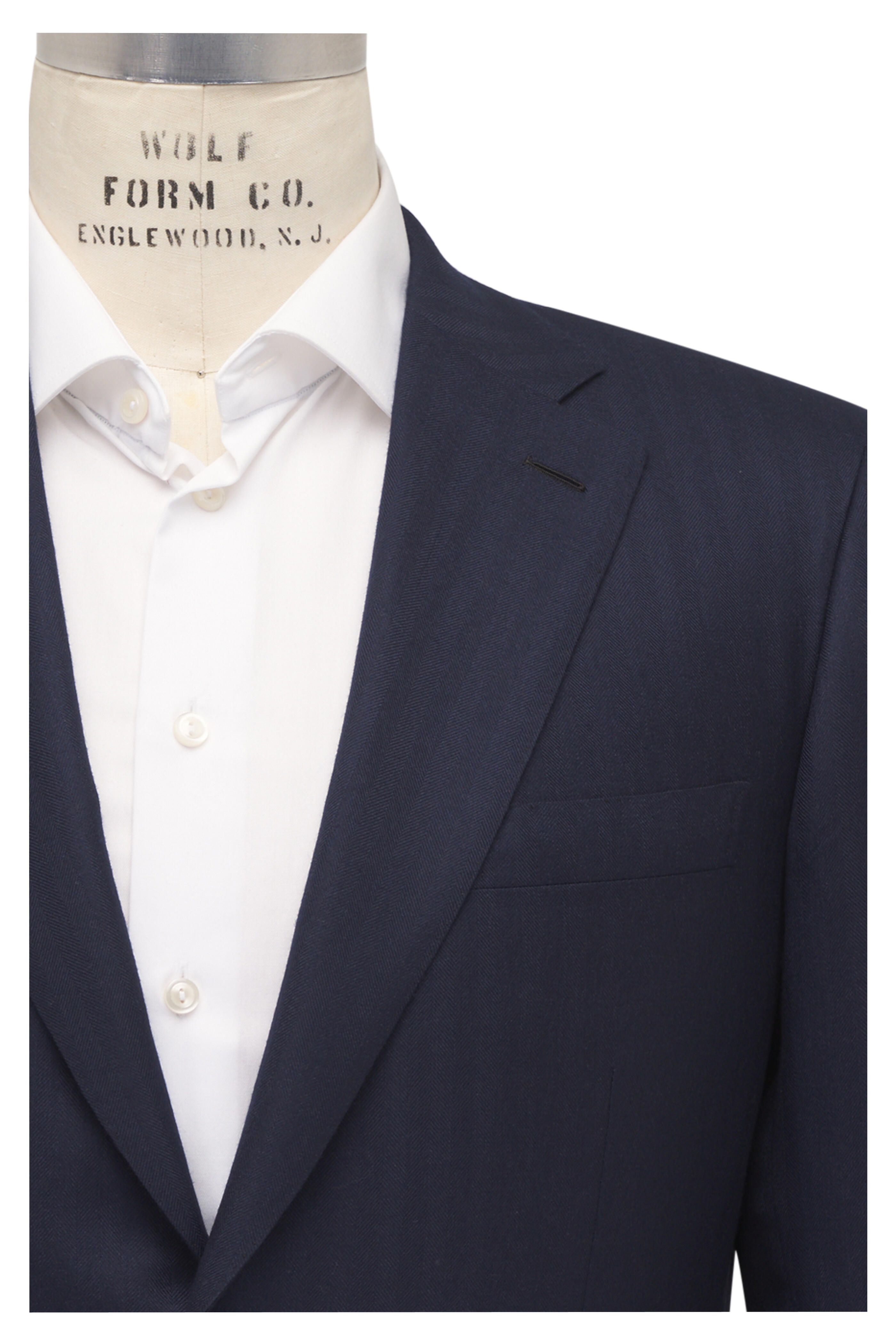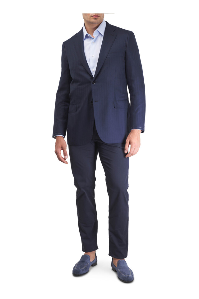 Navy Tonal Bone Solid Cashmere & Silk Sportcoat