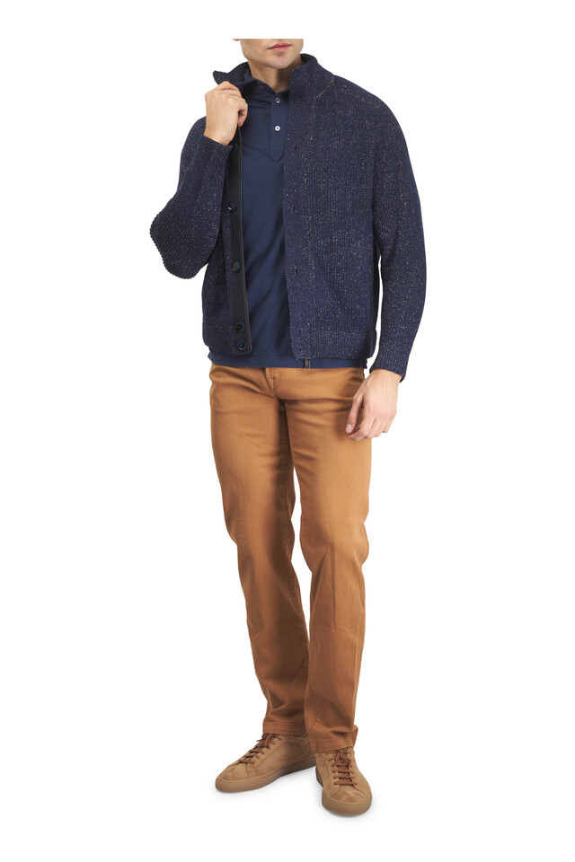 Fedeli - Navy Jersey Mélange Cotton Polo