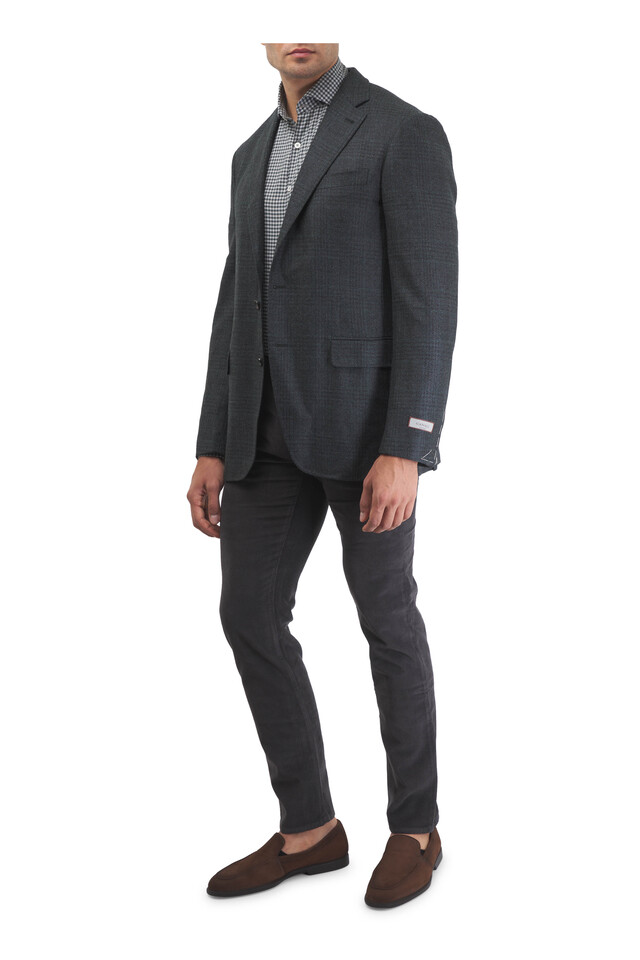 Kei Loden & Black Plaid Wool & Silk Sportcoat