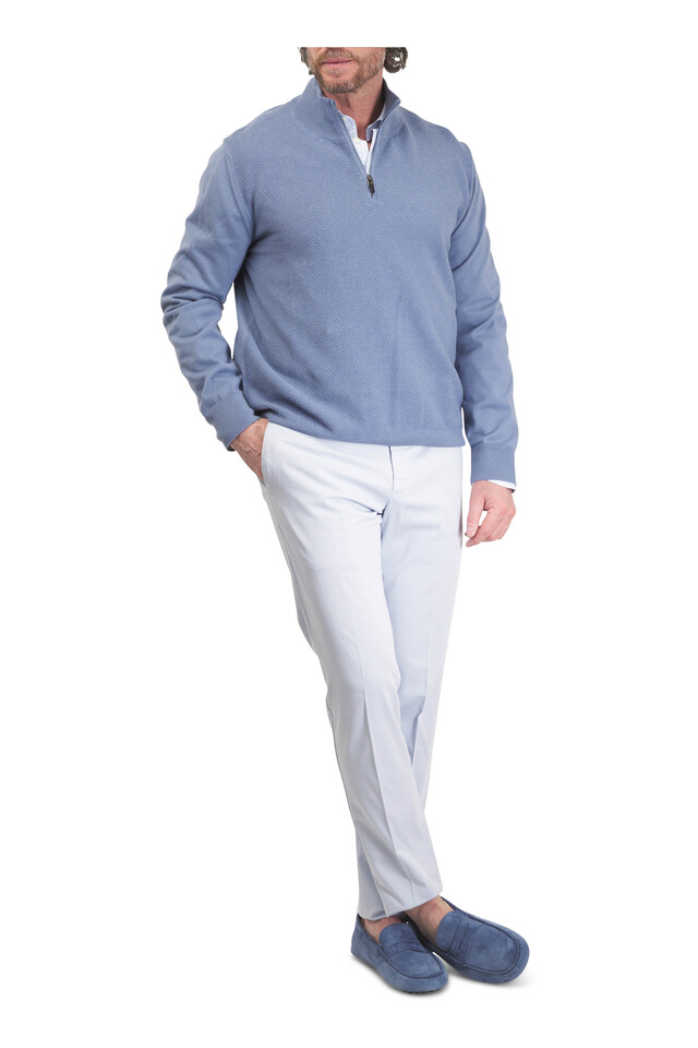 Canali - Light Blue Textured Quarter Zip Pullover