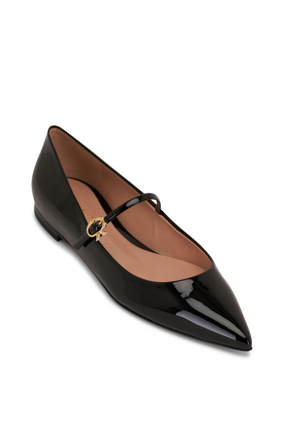 Black Patent Leather Mary Jane Pointed Ballet Flat