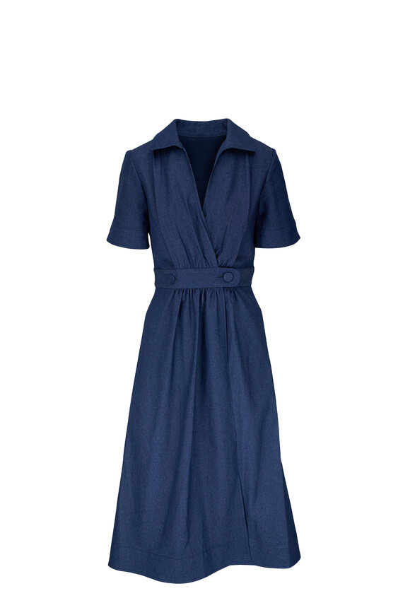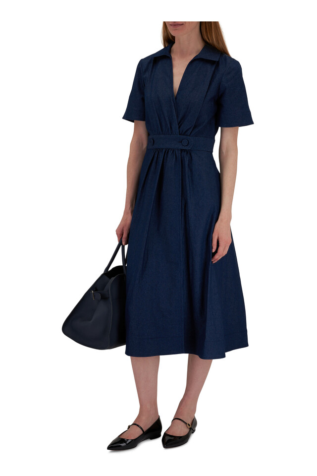 Dark Navy Collared Cross Front Midi Shirt Dress