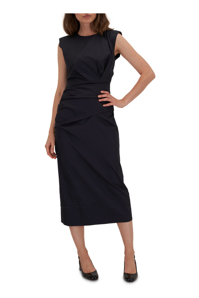 Draped Sophistication Dark Navy Midi Dress