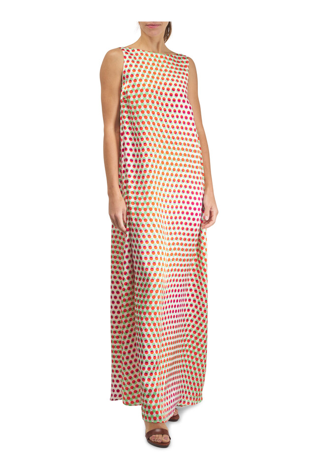 Draz Ecru Multi Polka Dot Print Silk Maxi Dress