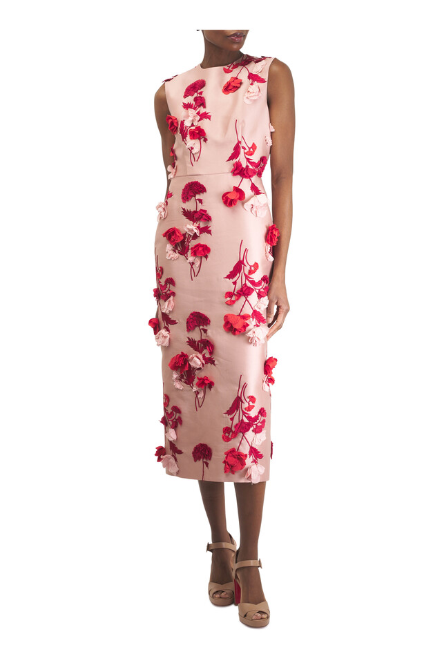 Floral Embroidered Mikado Sleeveless Midi Dress