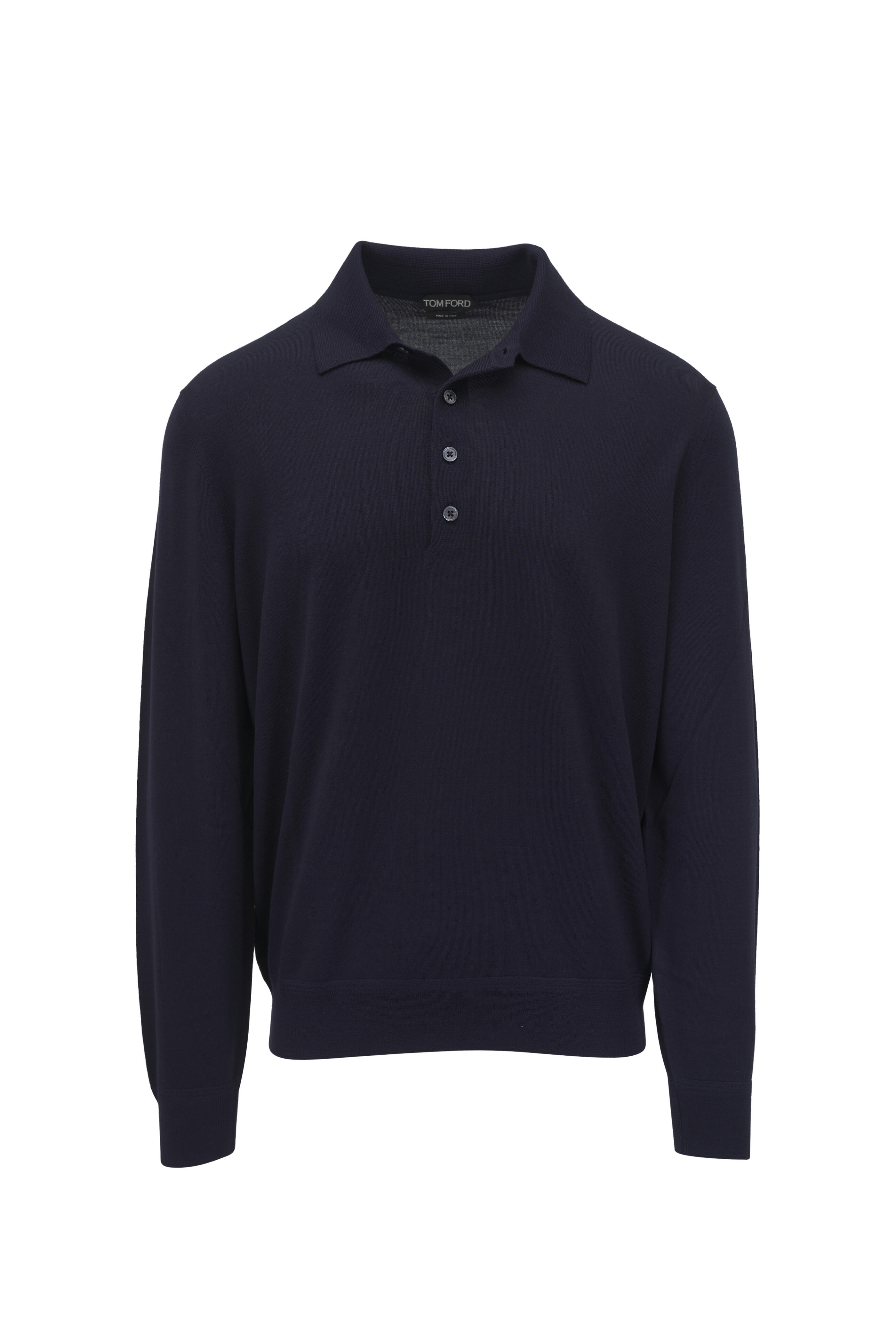 Navy Blue Fine Gauge Wool Long Sleeve Polo