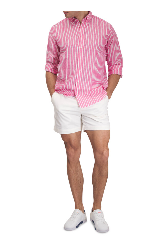 Pink & White Stripe Linen Dress Shirt