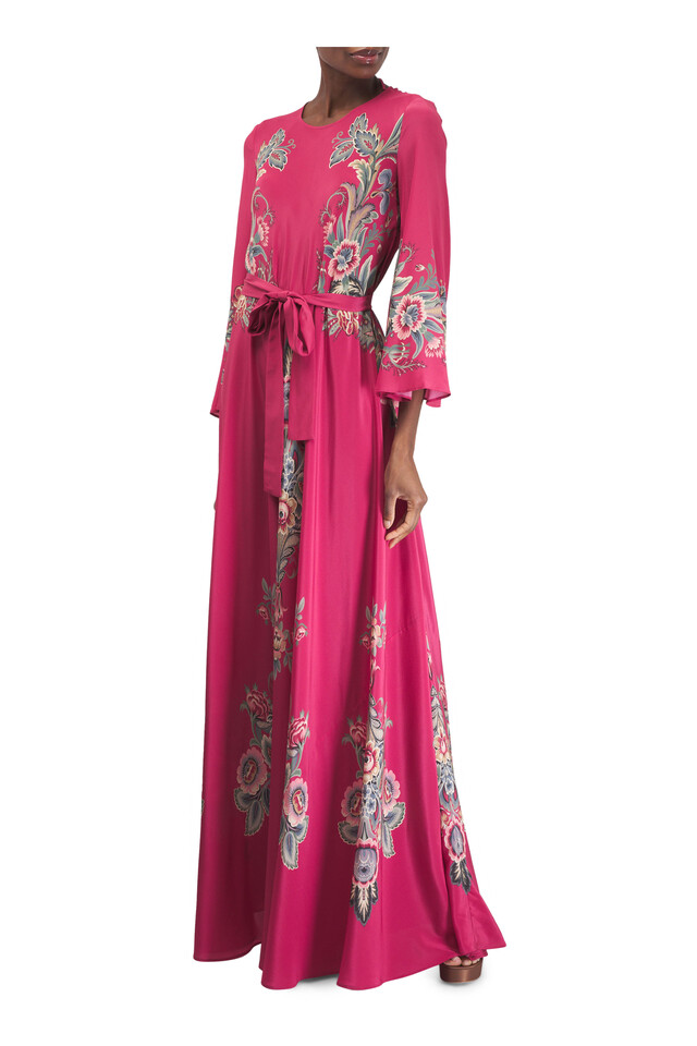 Red Multicolor Print Silk Gown