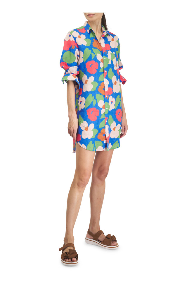 Frank & Eileen - Mary Bright Blue Floral Classic Shirtdress