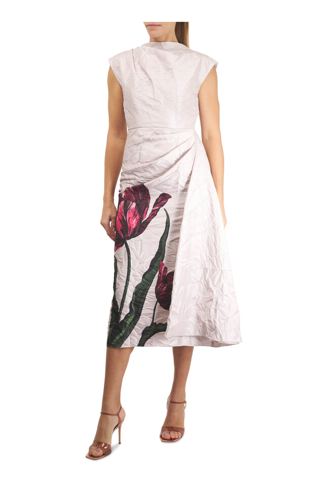 Rose Gold Glass Leather & Metallic Sandal, 95mm