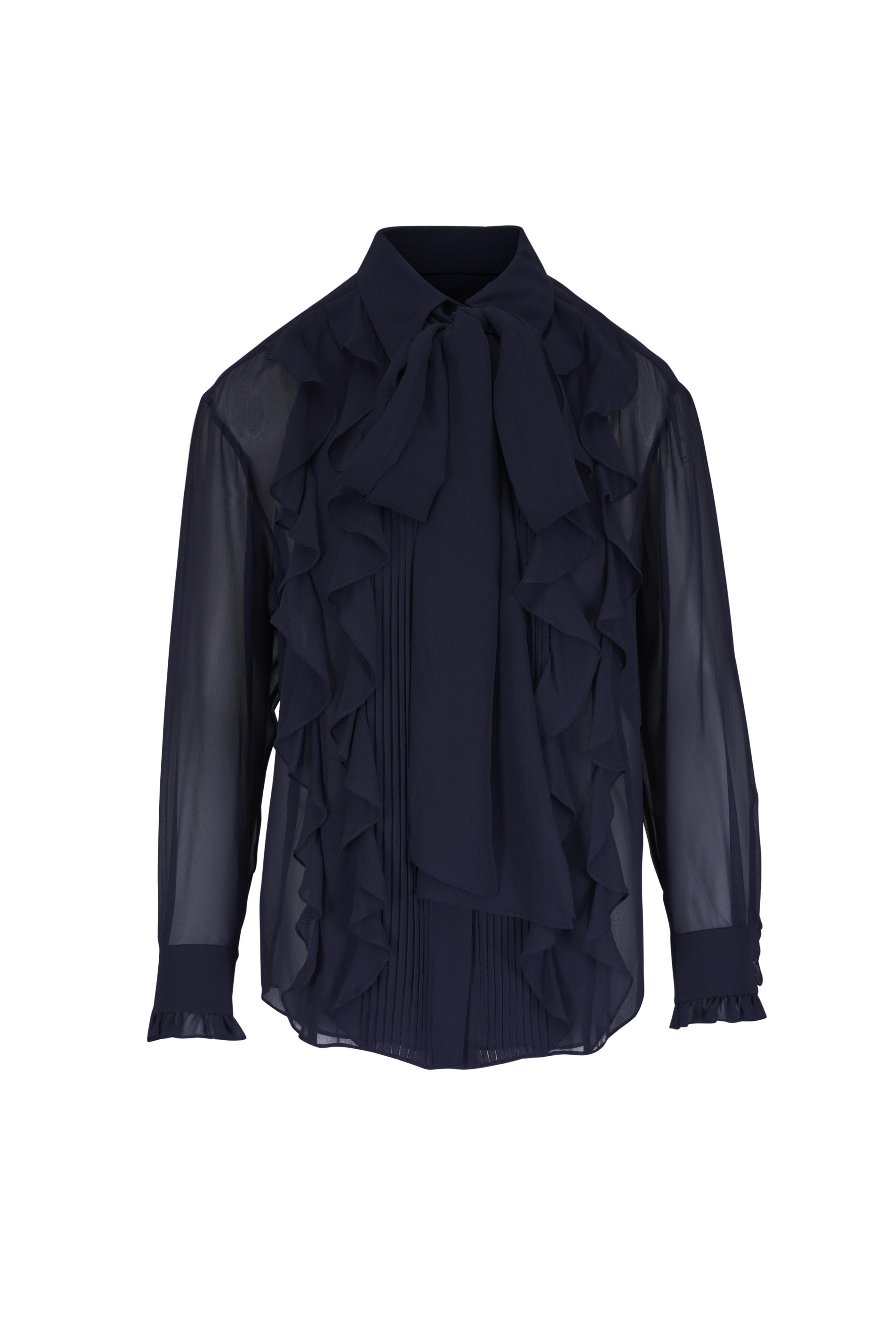 Warren Blue Ink Stretch Wool Pleated Wide Leg Pant