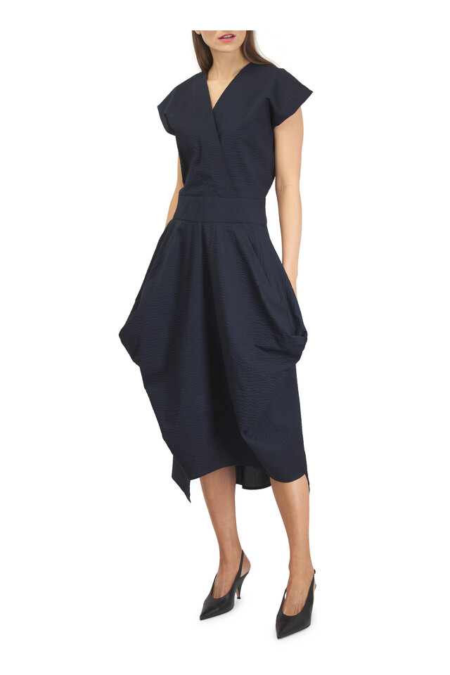 Nio Navy Ripple Cotton Twill Wrap Dress