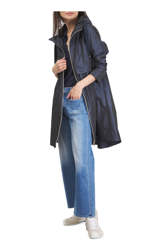 Navy Blue Techno Taffeta Long Parka