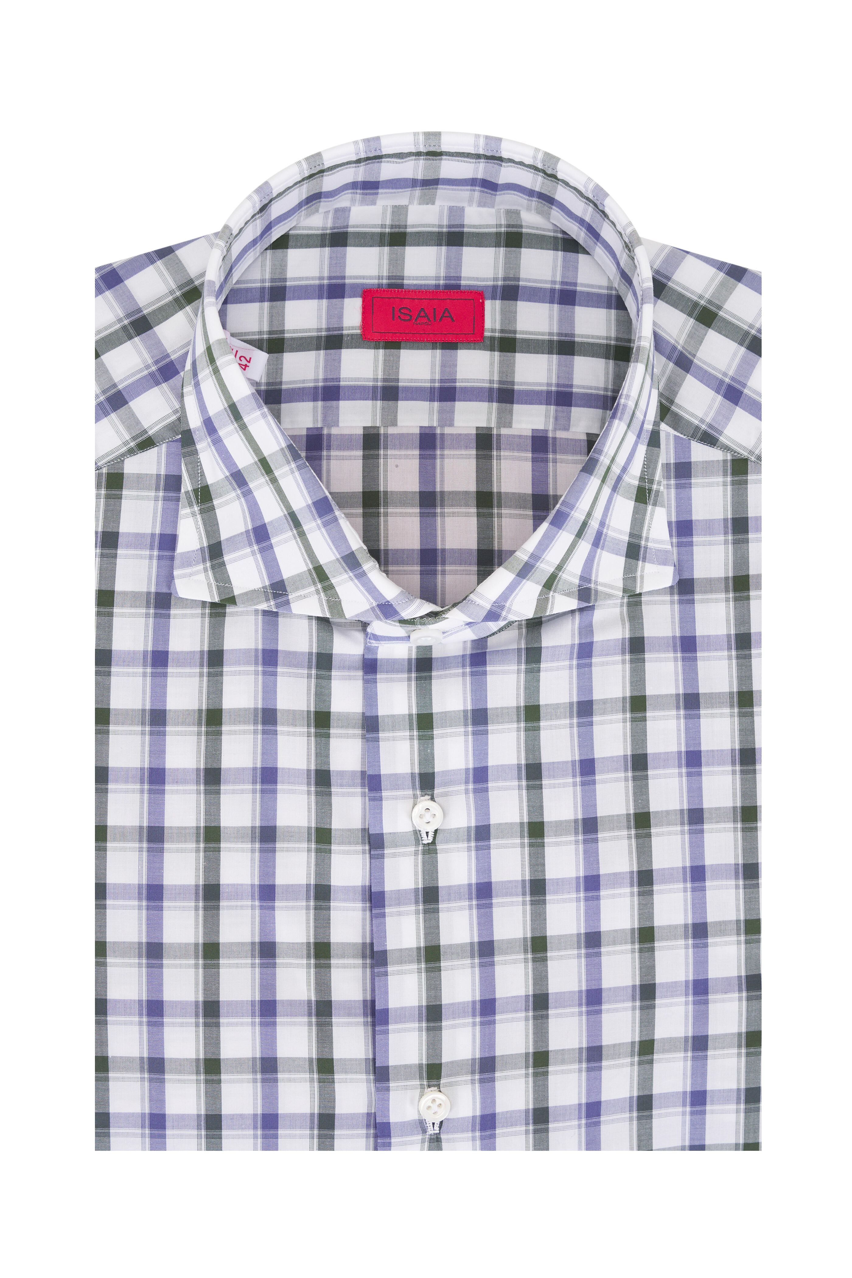 White, Green & Navy Check Cotton Dress Shirt
