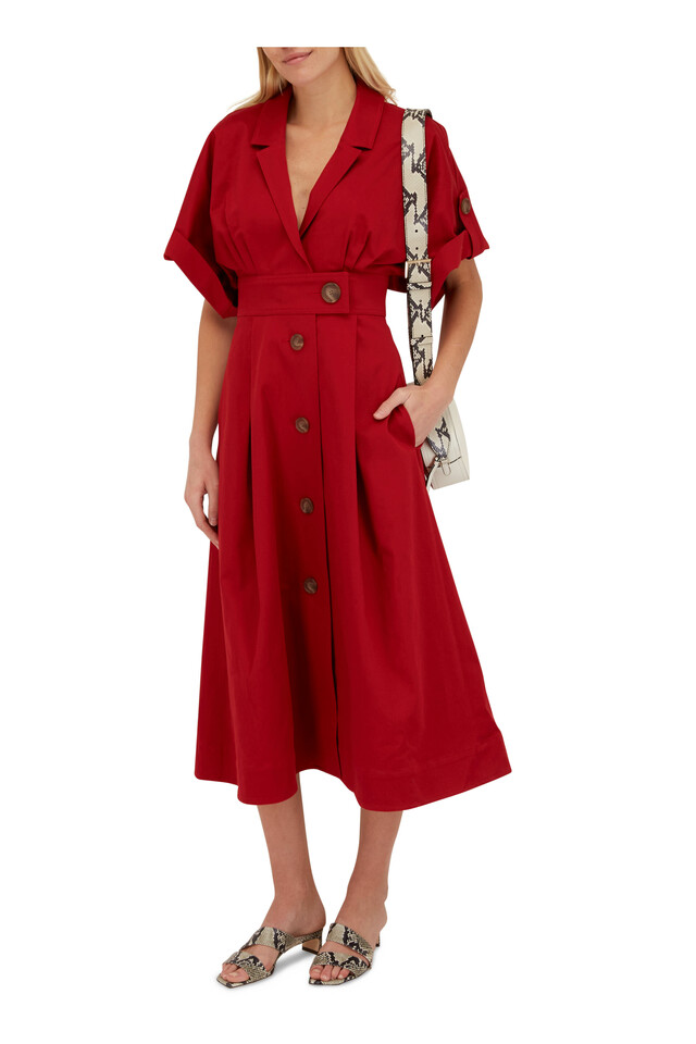 Icon Red Wide Rolled Sleeve Shirt Dress