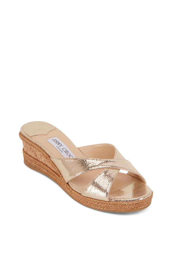 Almer Light Gold Lizard Print Leather Wedge, 50mm