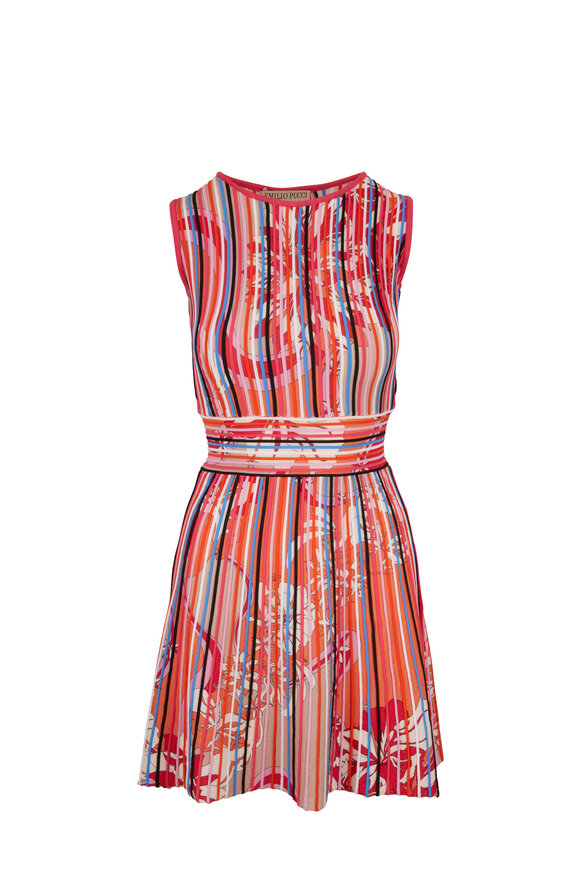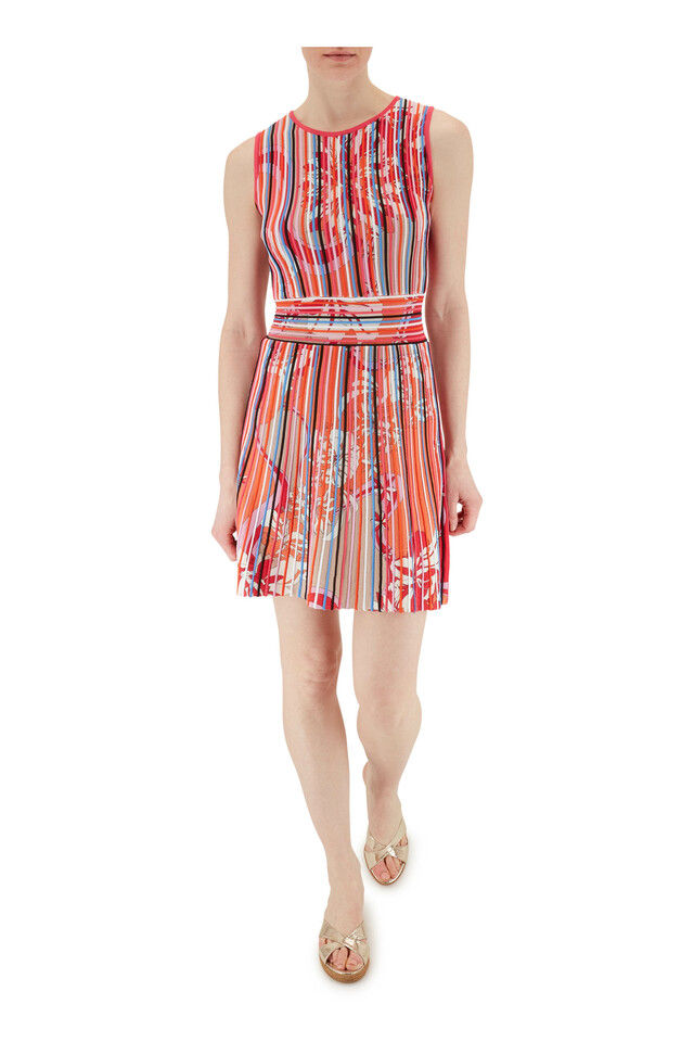 Pink Multicolor Ribbed Sleeveless Knit Dress