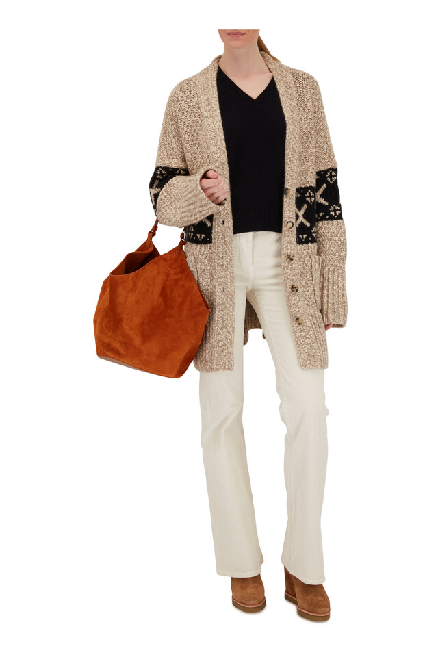 Johannes Neutral Jacquard Cashmere Cardigan