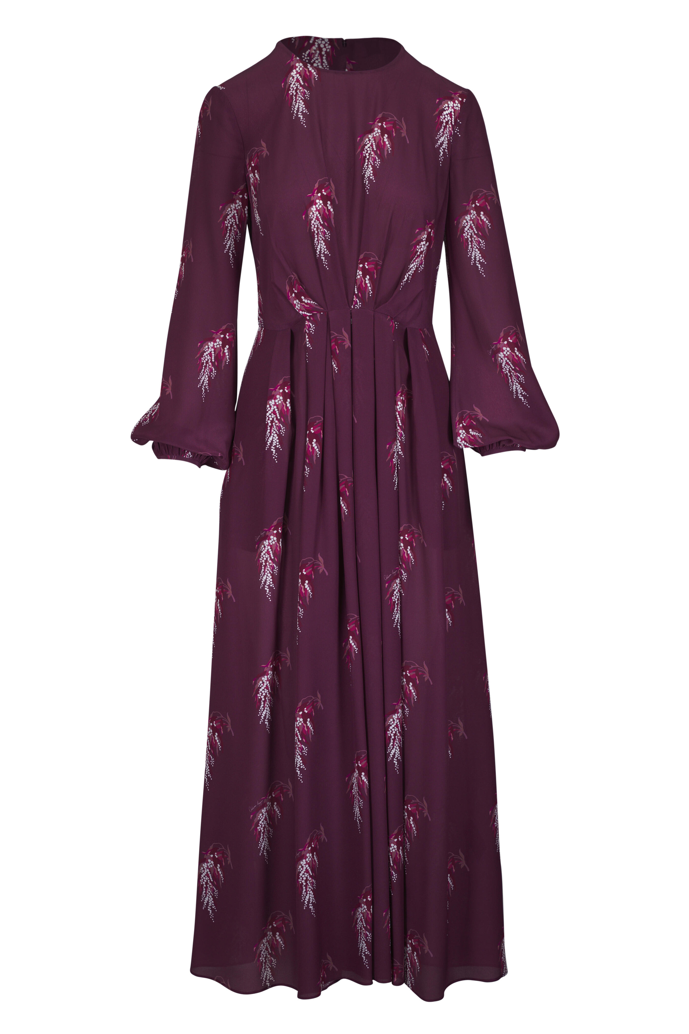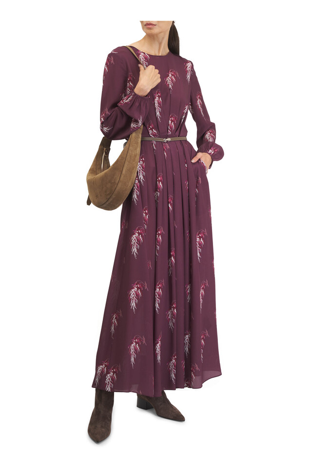Paravacini Burgundy Floral Print Silk Dress
