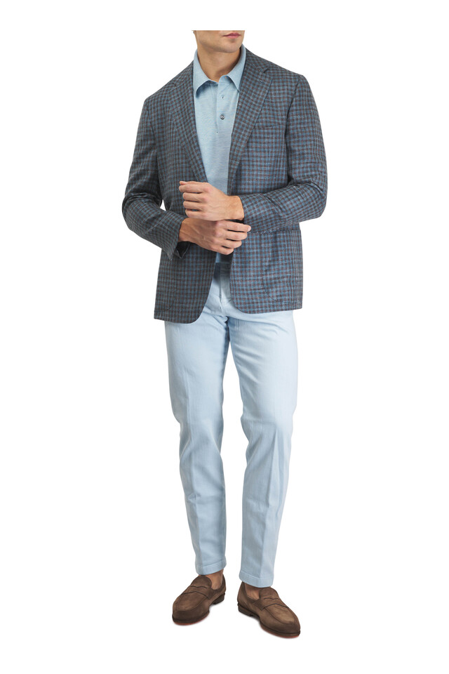 Light Blue Silk, Cashmere & Linen Knit Polo
