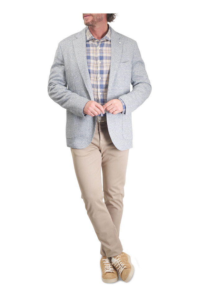 Blue & Tan Plaid Linen Sport Shirt