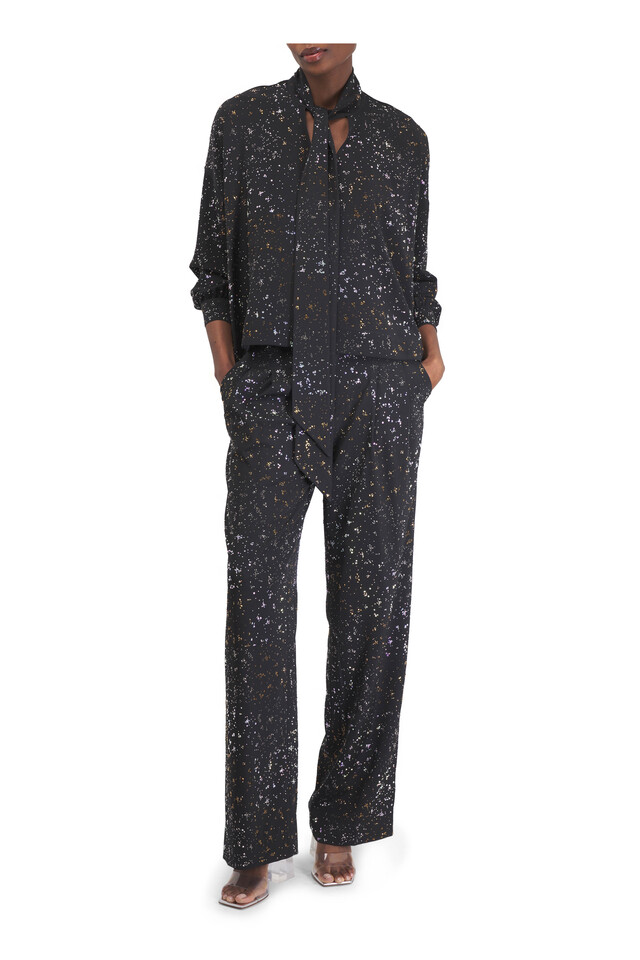 Meteor Shower Black Crystal Tie Neck Blouse