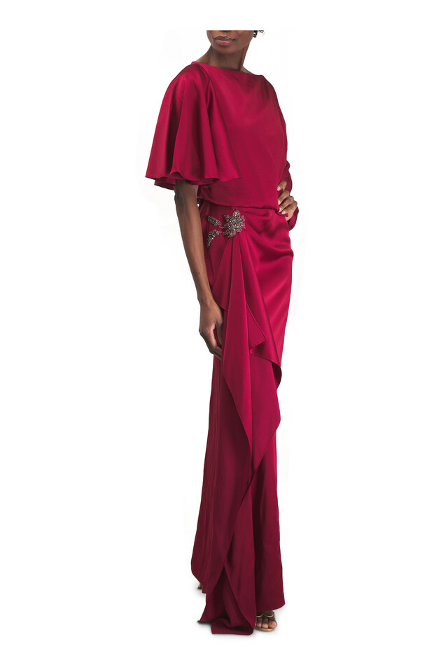 Erdem - Embellished Ruby Satin Cady Draped Gown