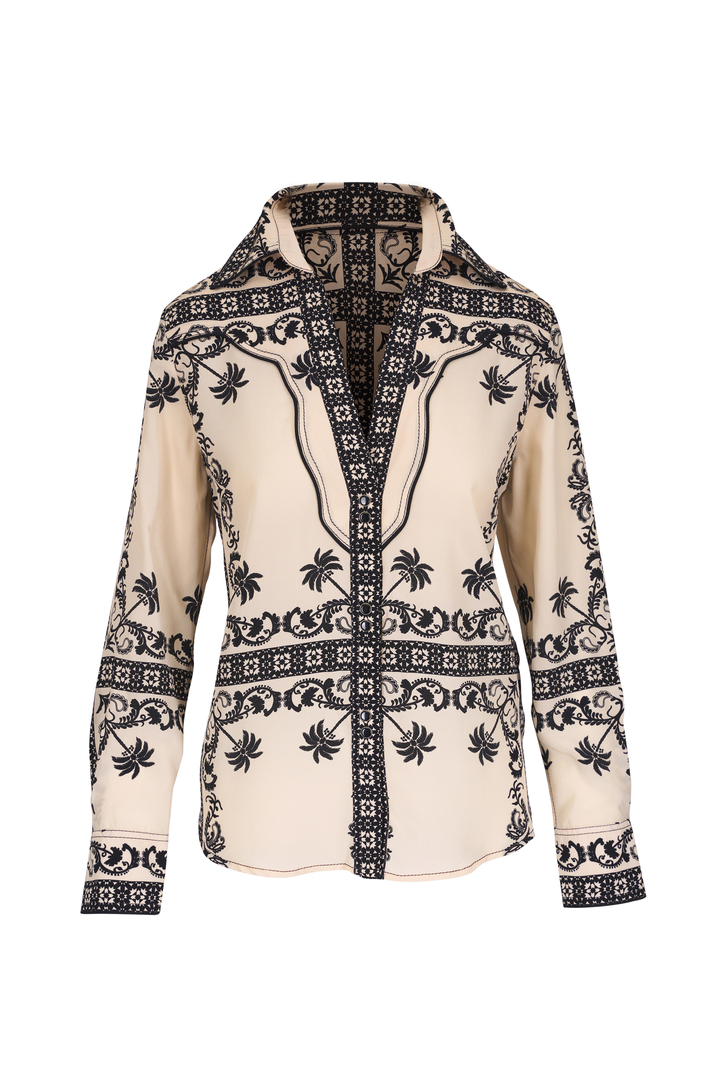 Sonriente Black & Ecru Print Silk Blouse