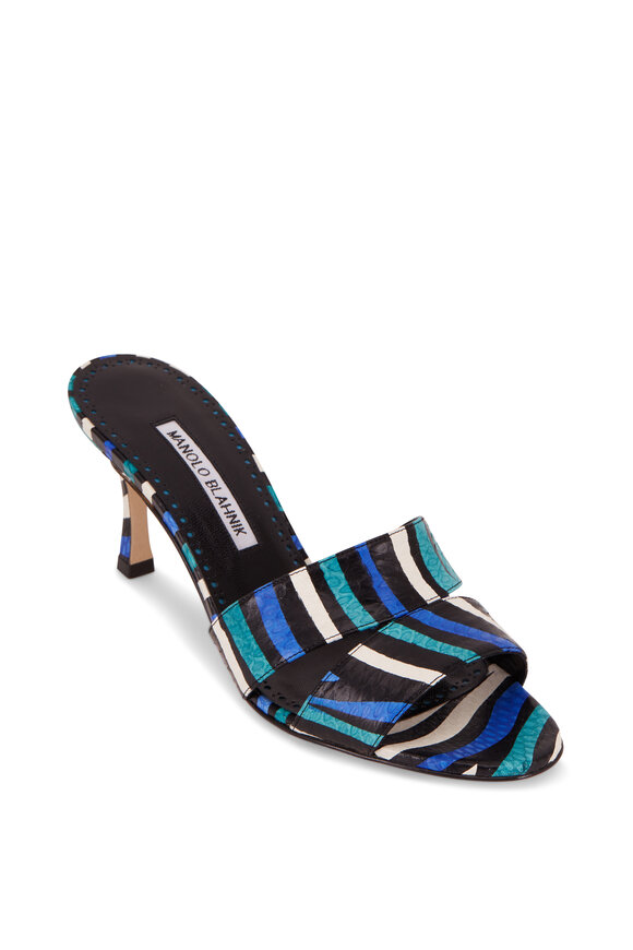 Iacopo Blue,Teal & Black Snakeskin Mule, 70mm