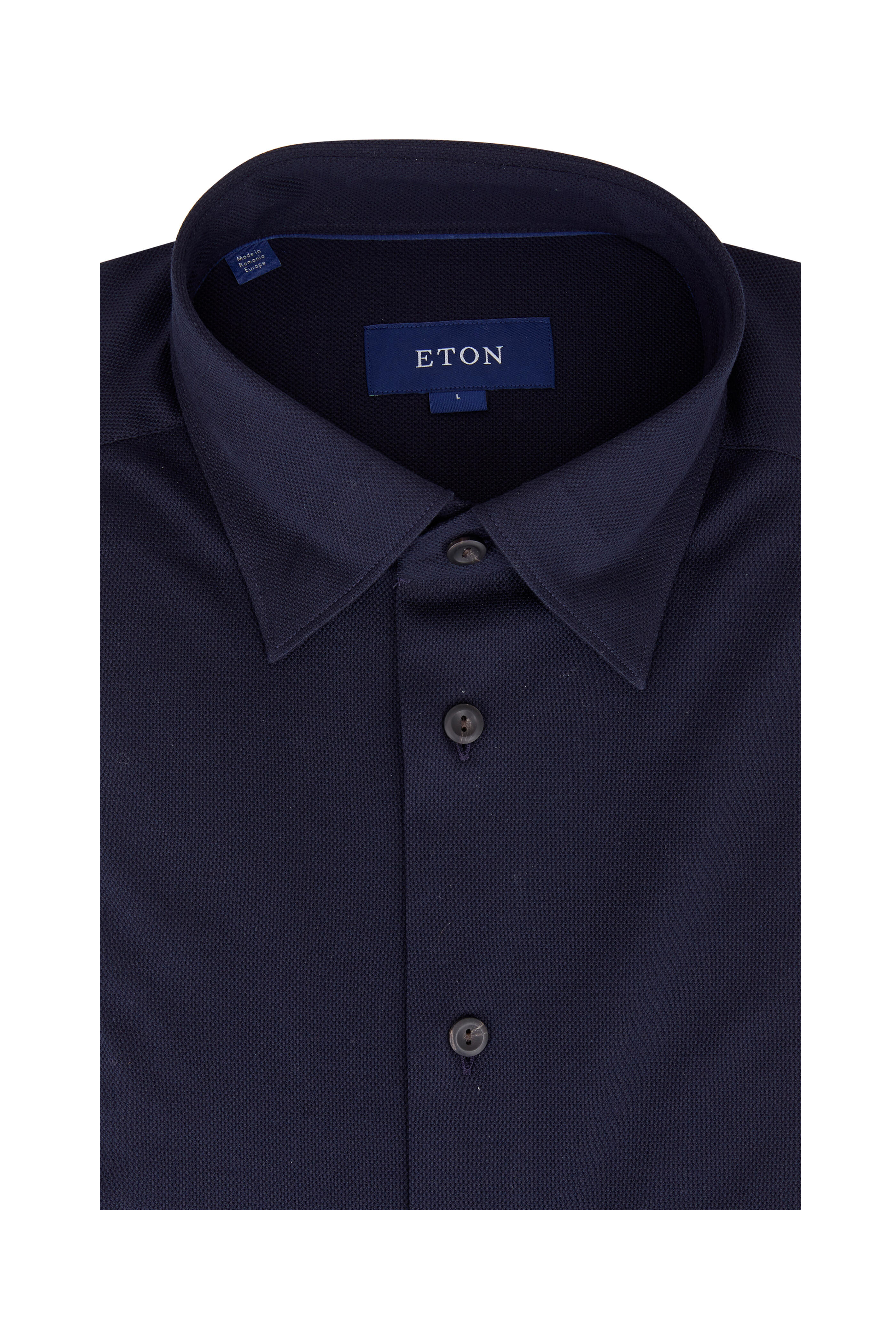 Eton - Navy Blue Piquè Slim Sport Shirt