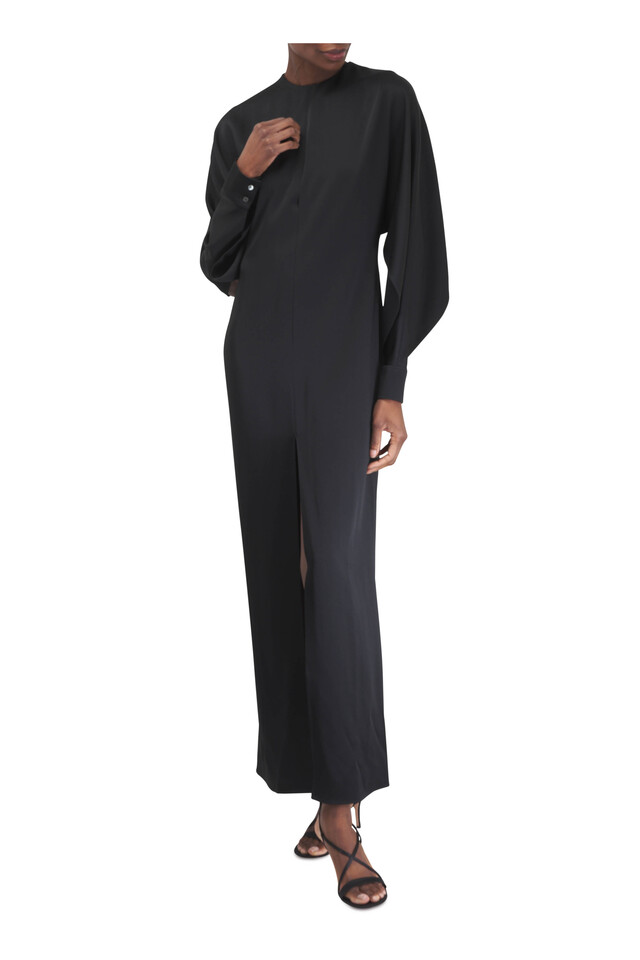 Black Slit Sleeve Satin Gown