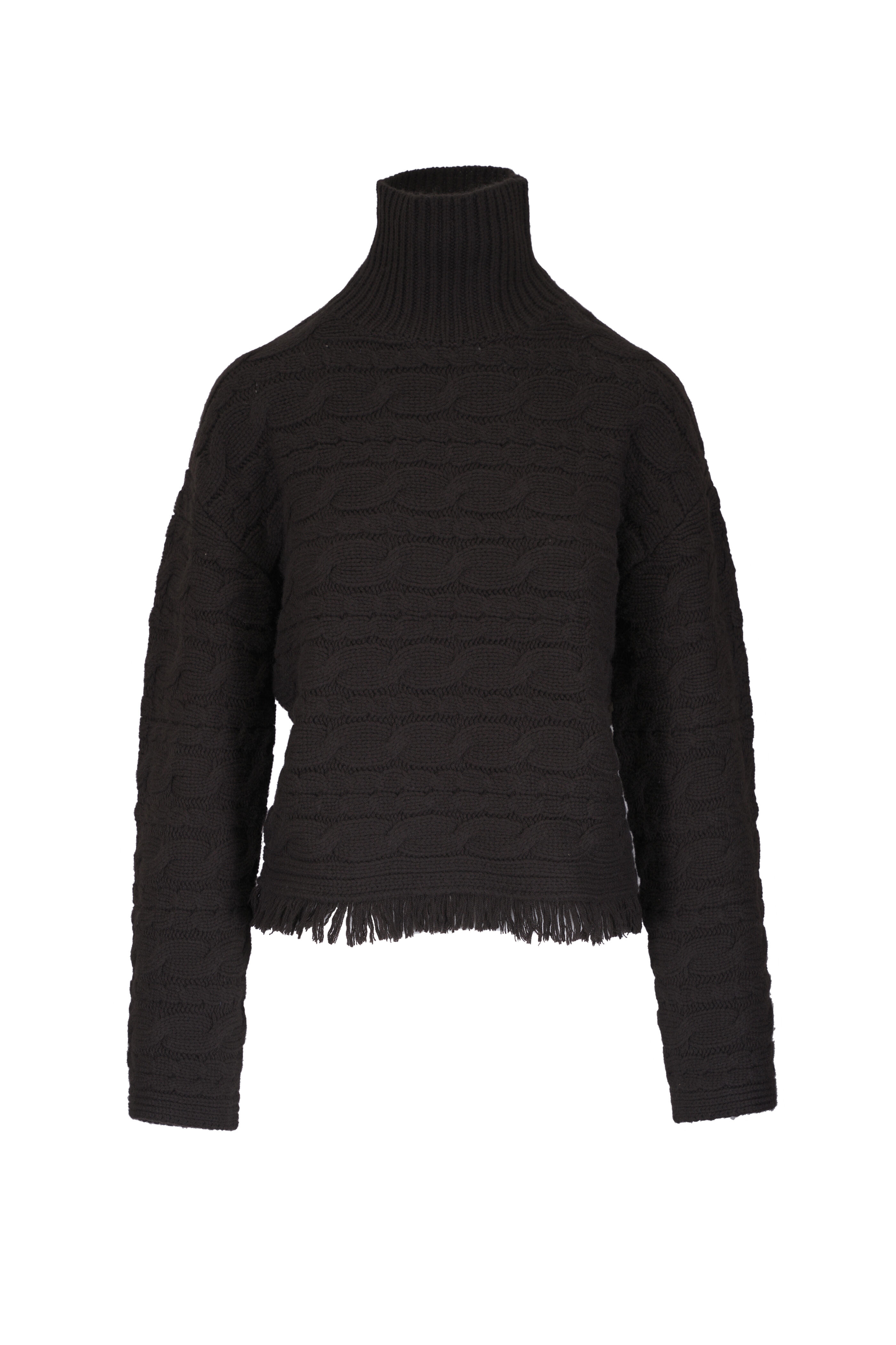 Brown Cropped Cable Knit Turtleneck Sweater