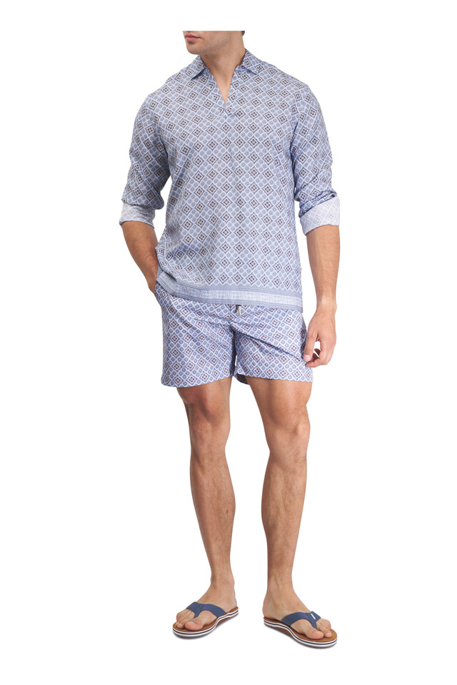 Bulldog Wave Blue Paisley Print Swim Trunks