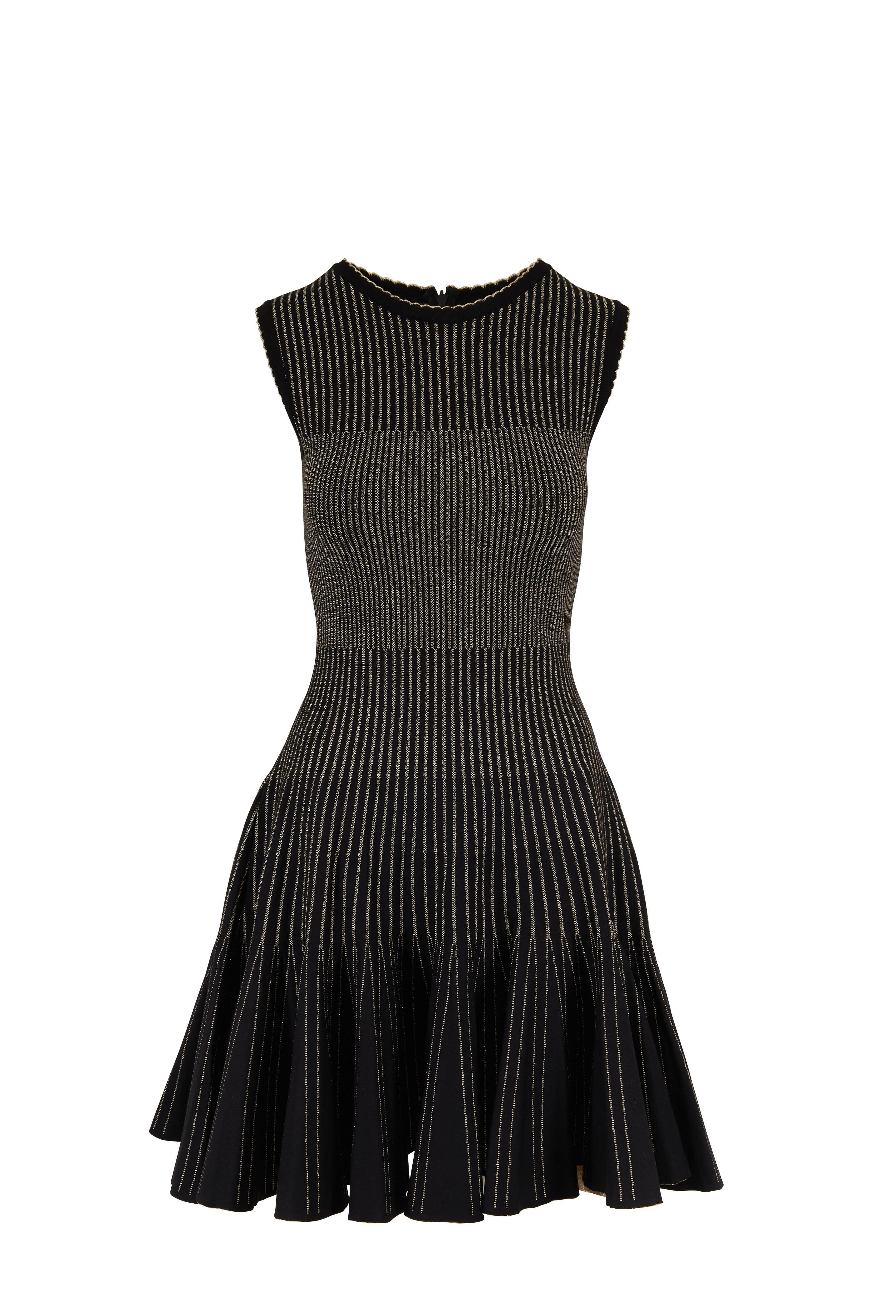 Black/Gold Accordion Fit & Flare Sleeveless Dress