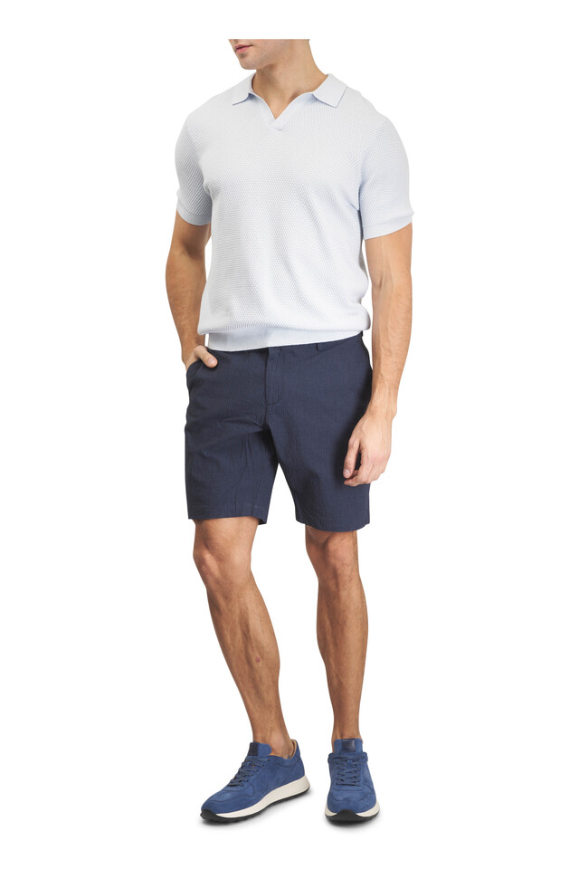 Deke - Oasis Indigo Check Seersucker Bermuda Shorts