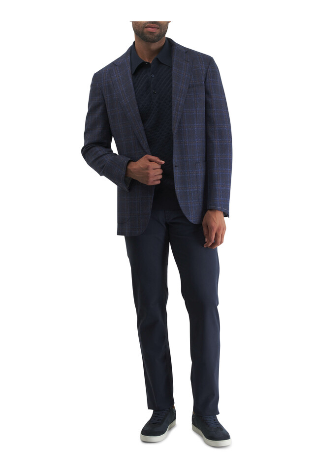 Trama Silk Navy Blue Textured Short Sleeve Polo