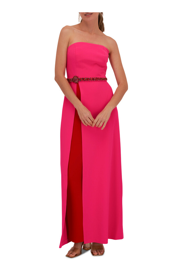 Daniella Electric Pink & Red Stretch Crepe Gown