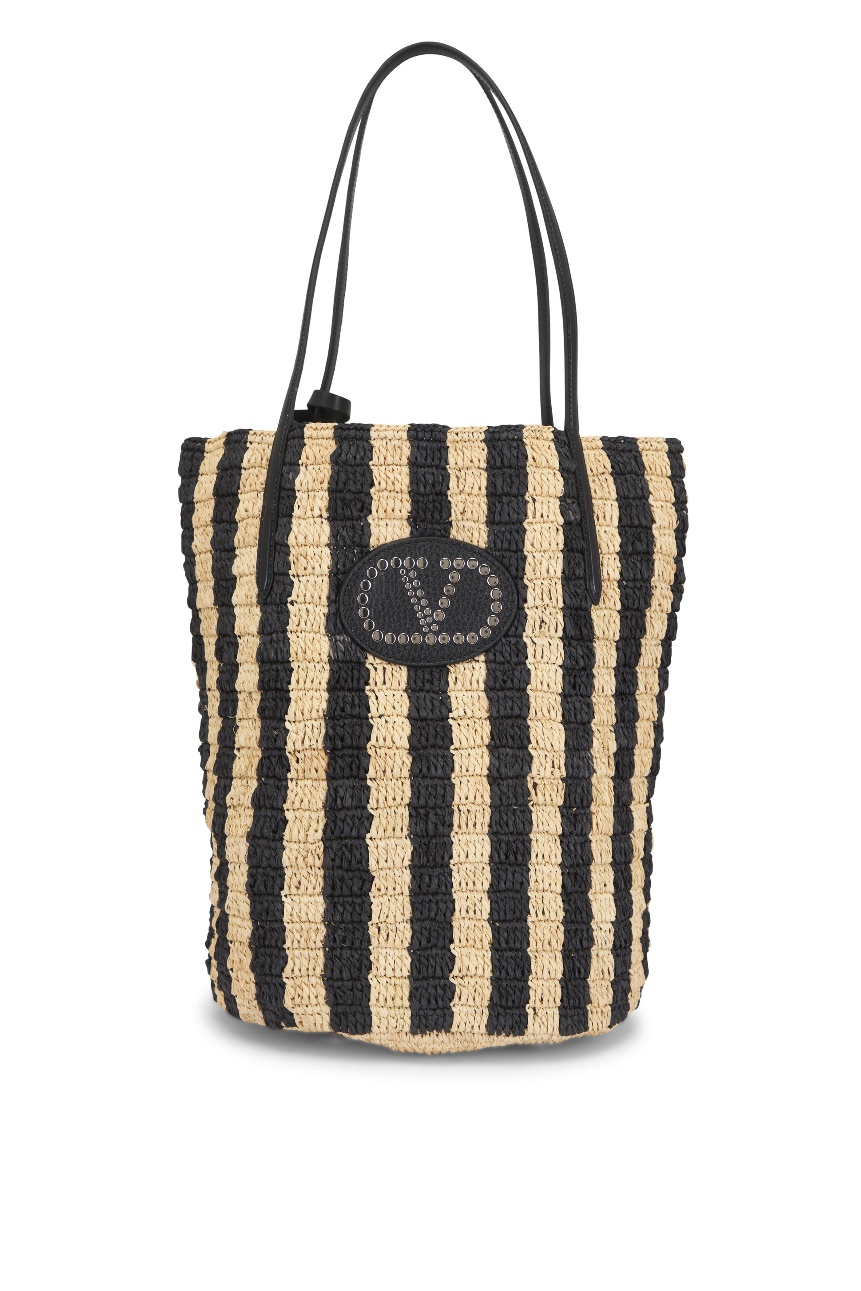 VLogo Natural & Black Stripe Raffia Shopping Bag