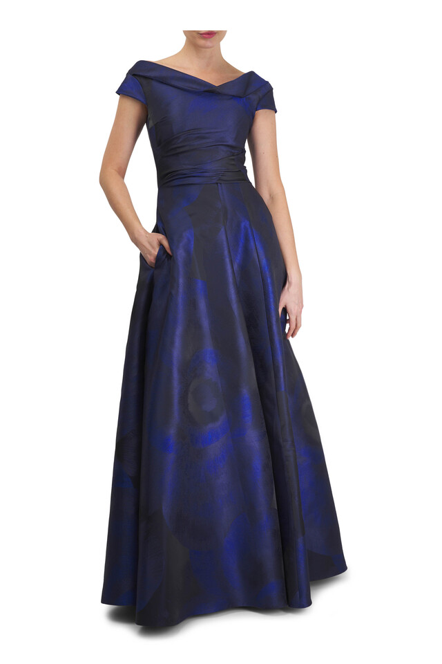 Og10 Enzian Blue Lisianthus Jacquard Gown