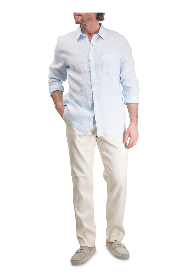 Light Blue Houndstooth Linen Sport Shirt