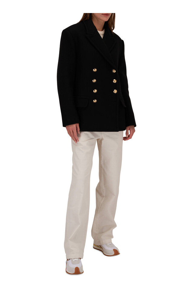 Pascal Black Double-Breasted Short Peacoat