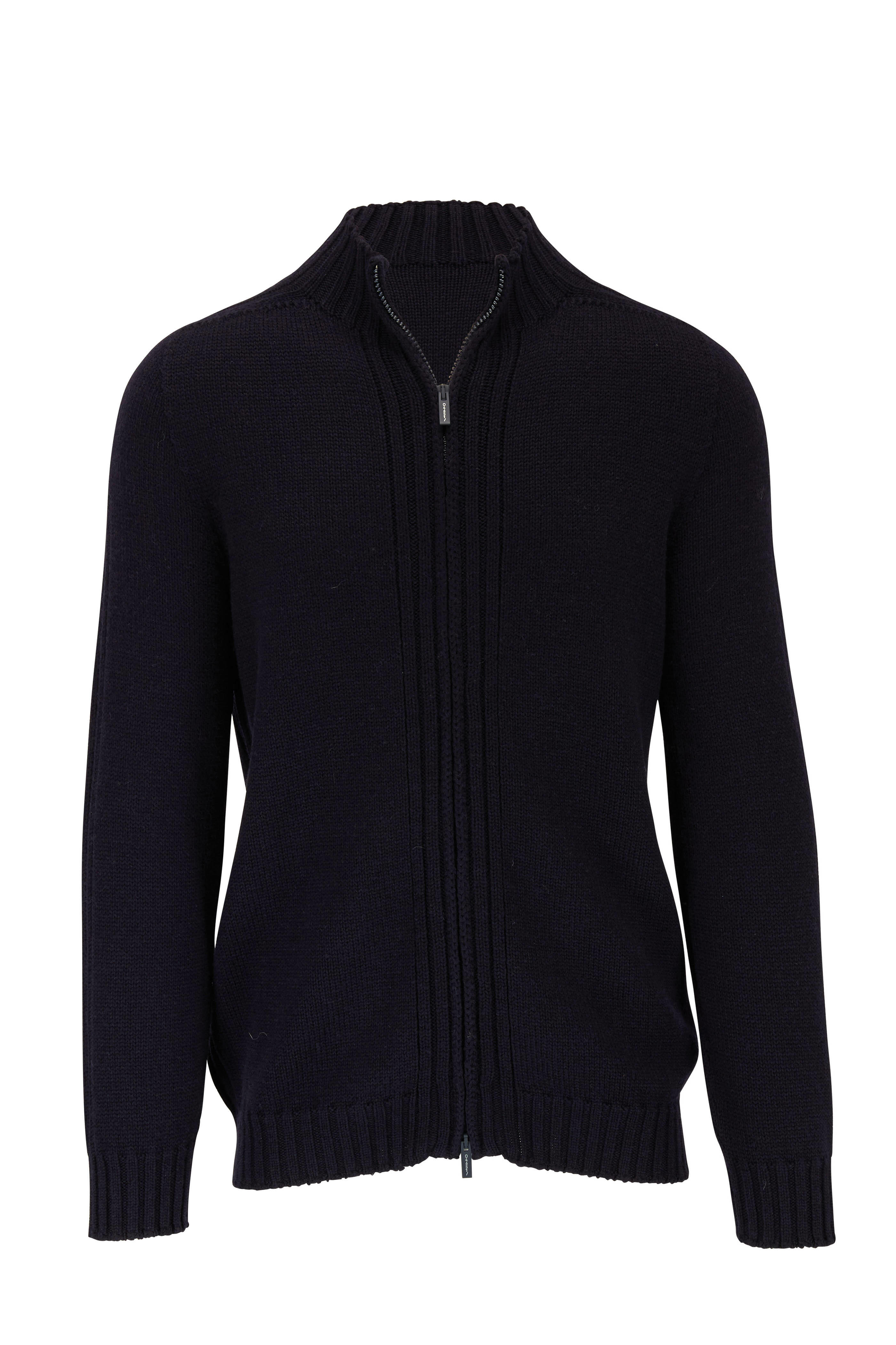 04651/ - Fisherman Navy Front Zip Wool Jacket