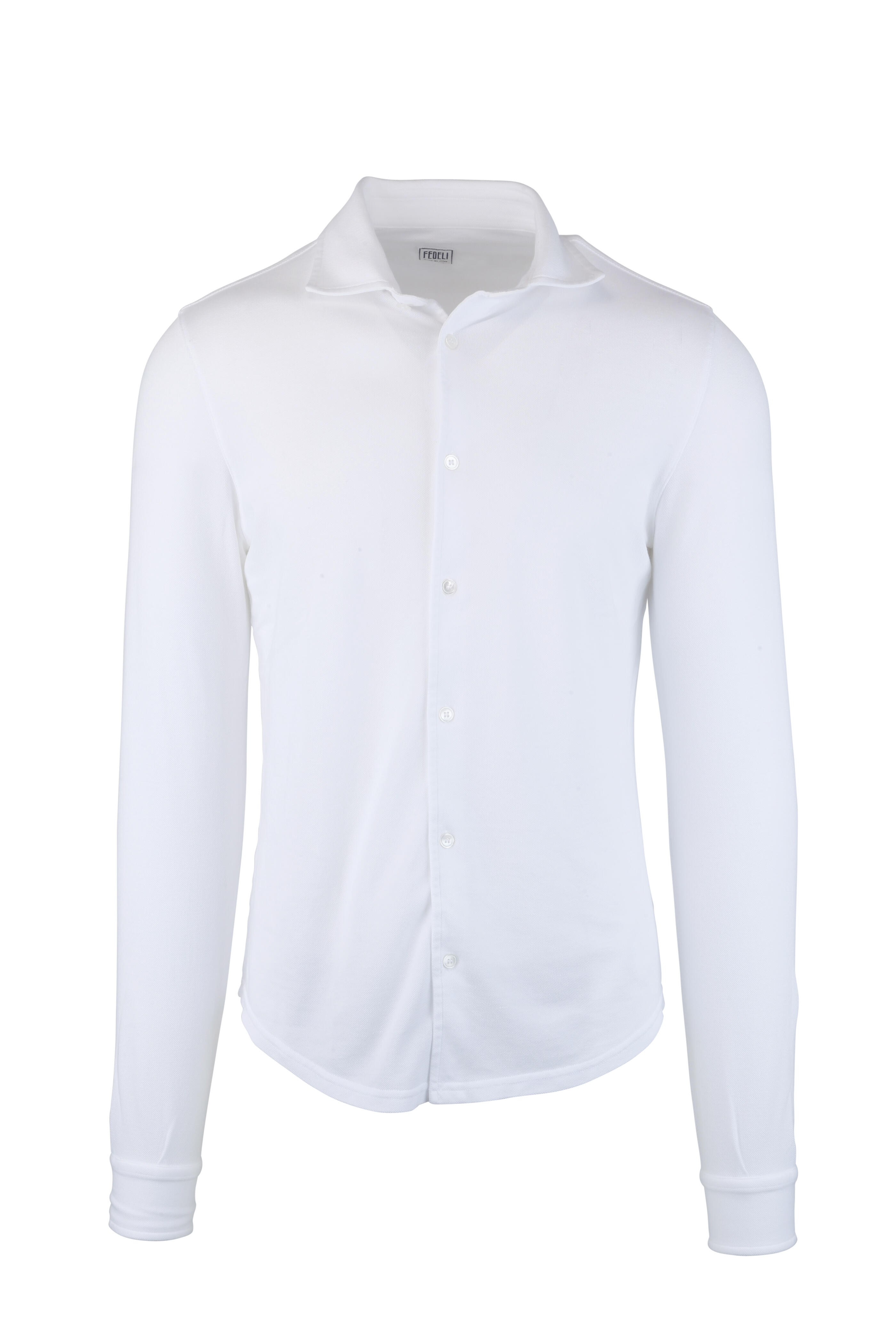 Fedeli - Frost White Long Sleeve Piquè Polo