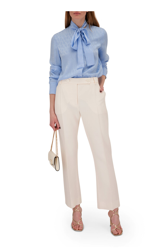 Iris Lilac Silk jacquard Tie Neck Blouse