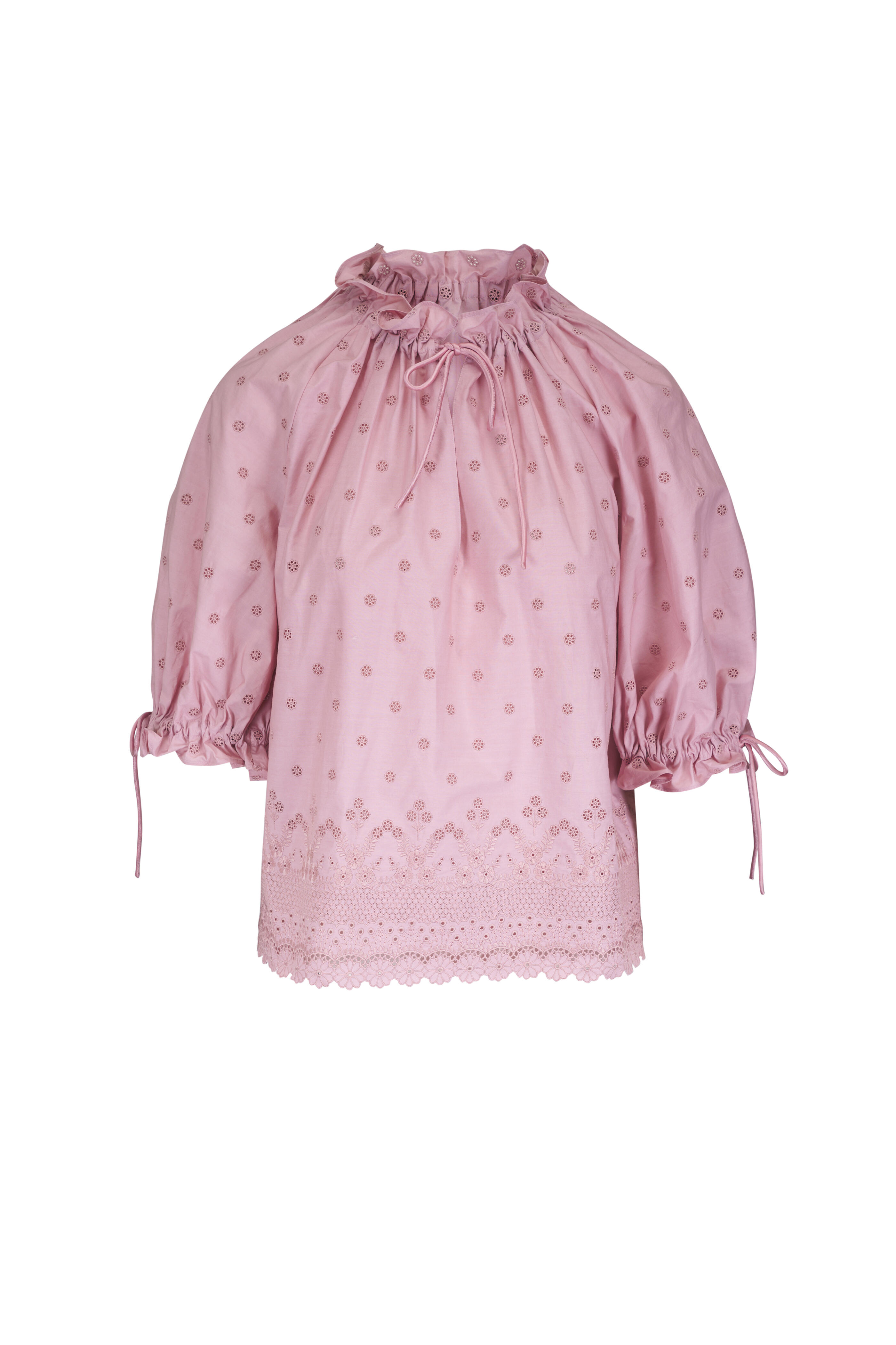 Valentino - Sangallo Pink Fleurs Ajours Margheritine Lace Top