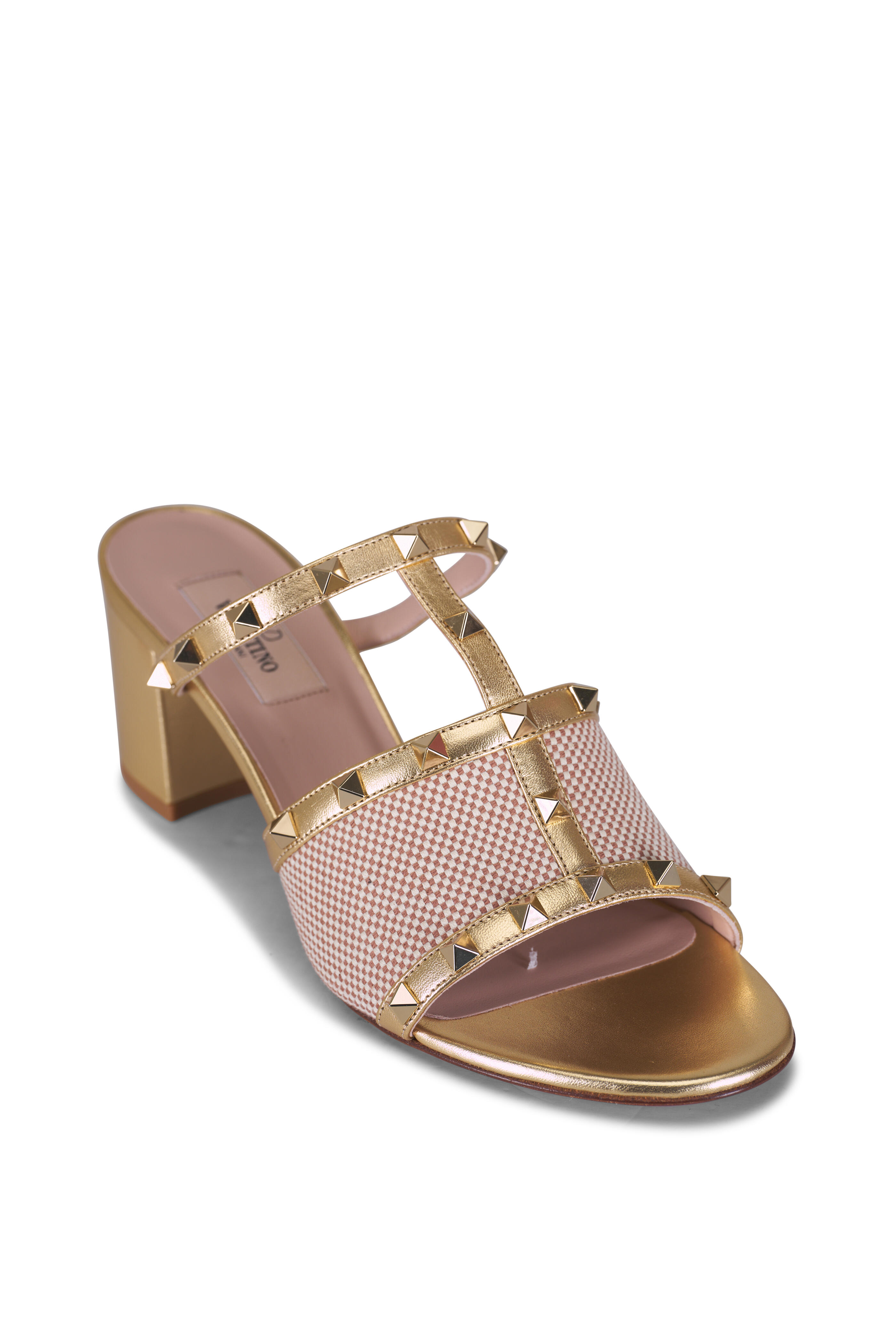 Rockstud Natural Canvas & Leather Sandal, 60mm